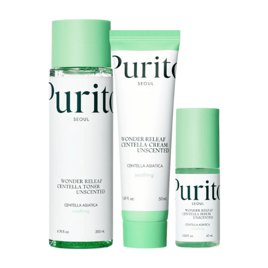 Purito Mighty Bamboo Panthenol Serum – minimalistisk grön flaska med vårdande serum för känslig och torr hud.